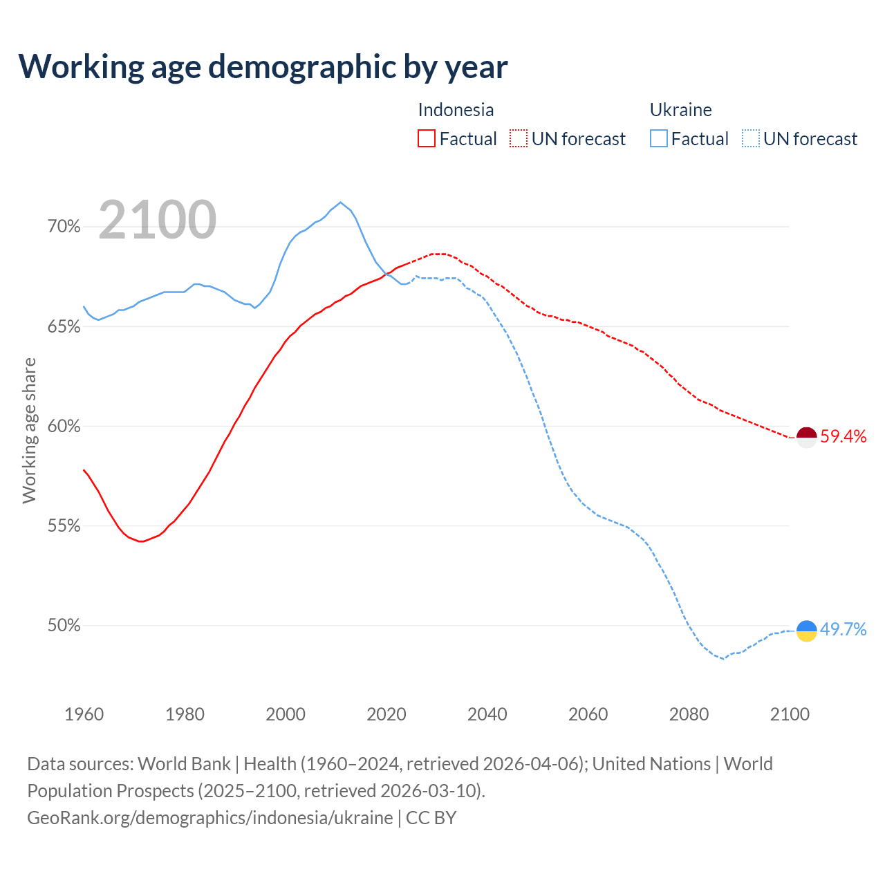 - Indonesia has 197M working age adults (aged 15-64) vs 26.9M in Ukraine.