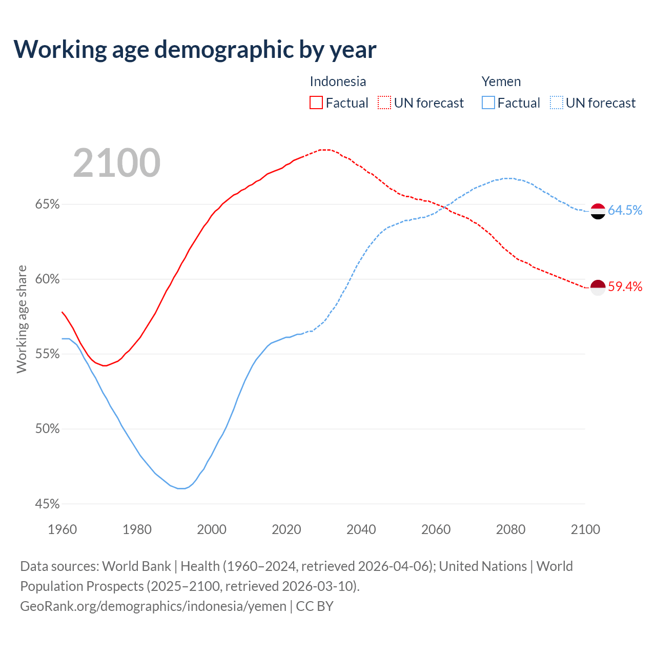 - Indonesia has 197M working age adults (aged 15-64) vs 24.4M in Yemen.