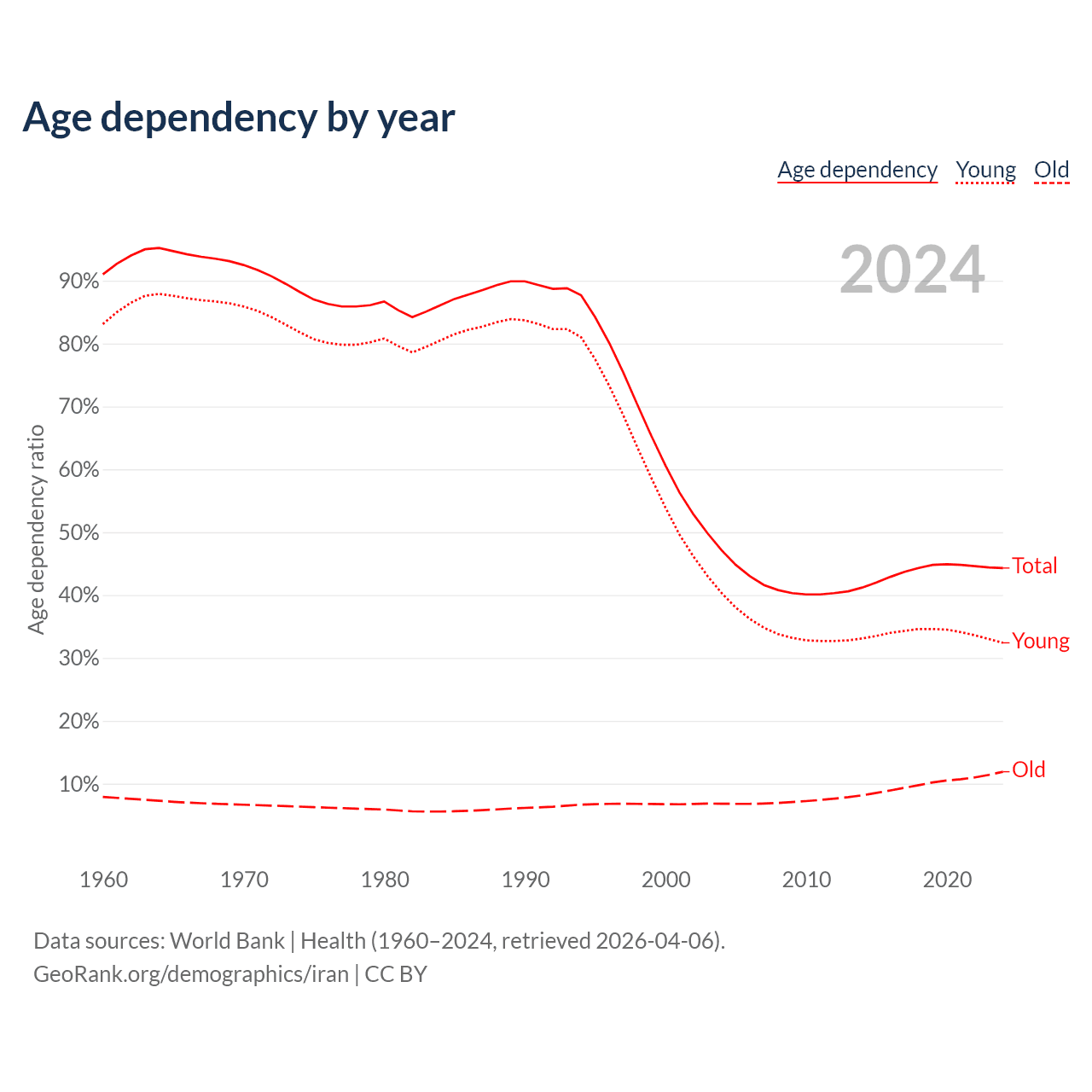 Data sources: World Bank | Health (1960–2024, retrieved 2026-04-06); U.S. Census Bureau (1960–2024, retrieved 2026-02-08).