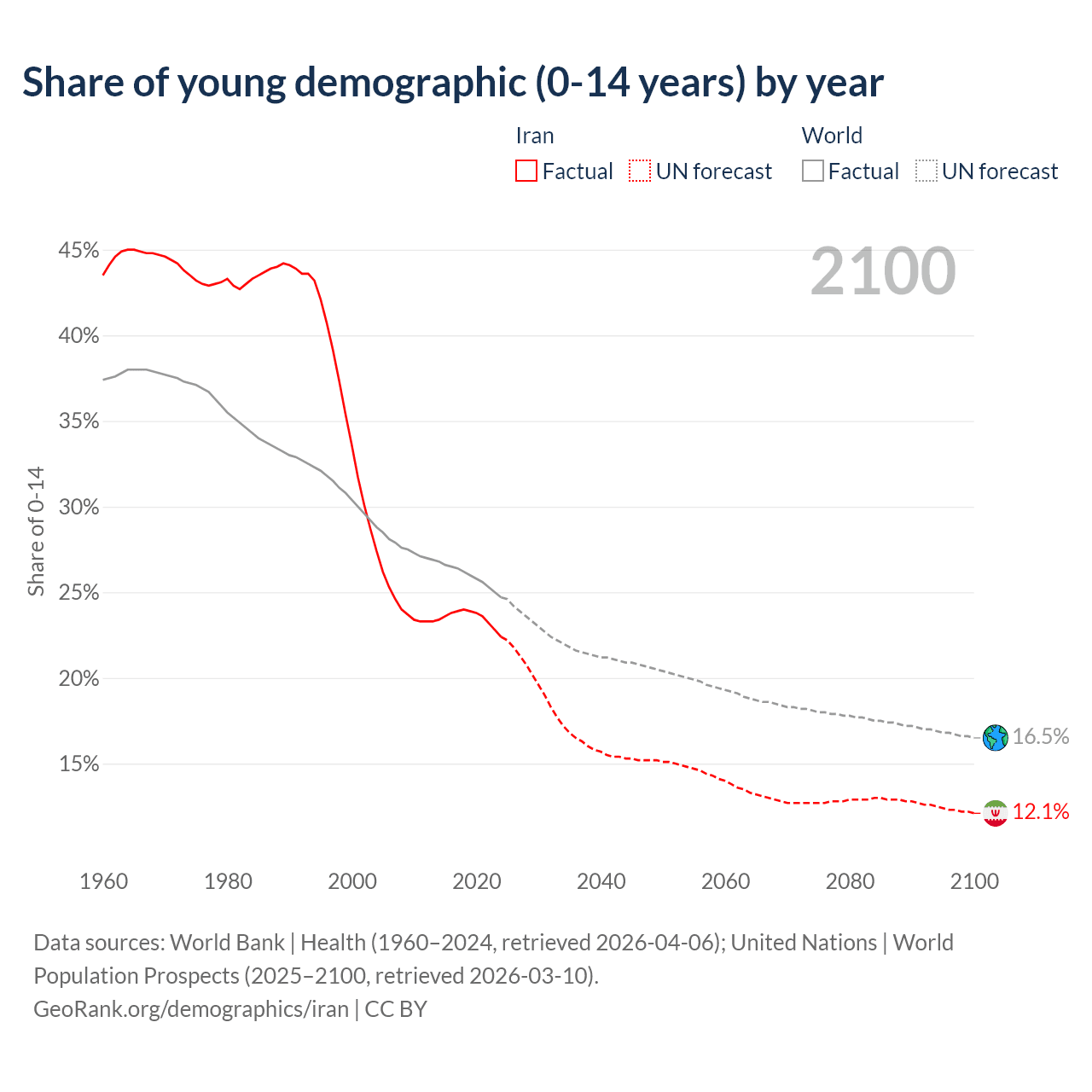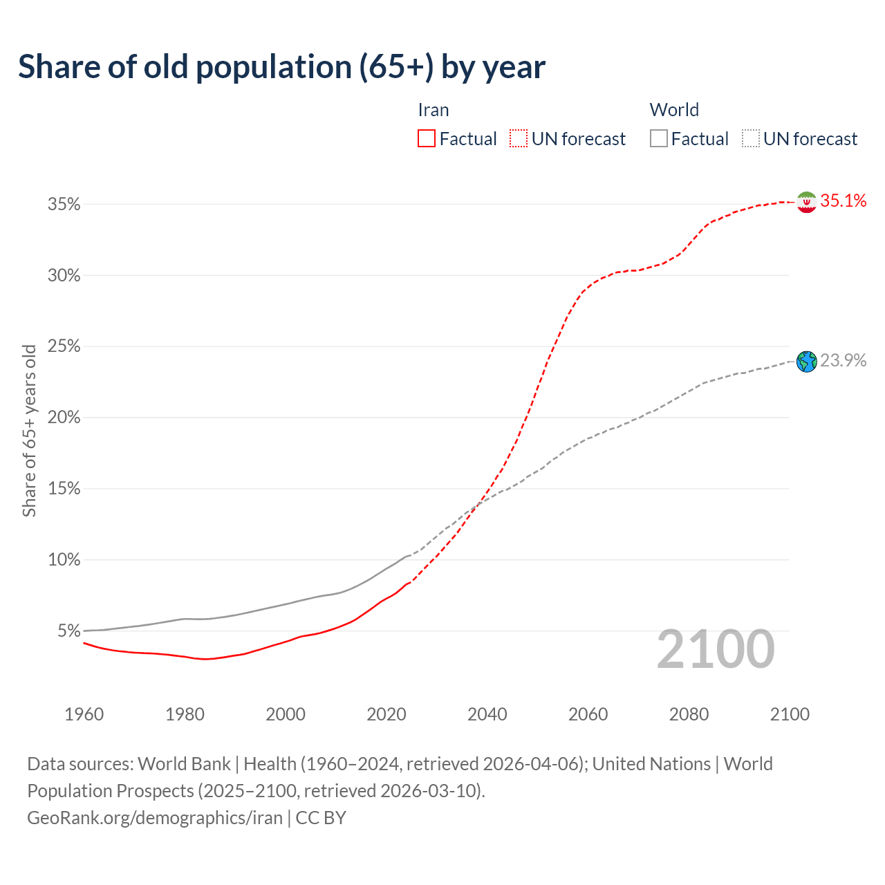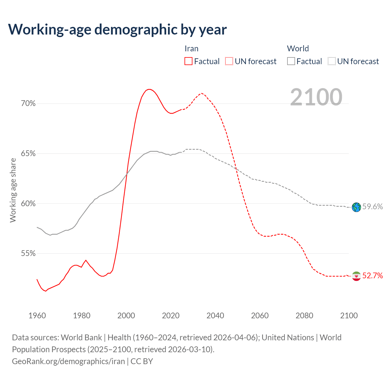 Median age in Iran, 1960–2100