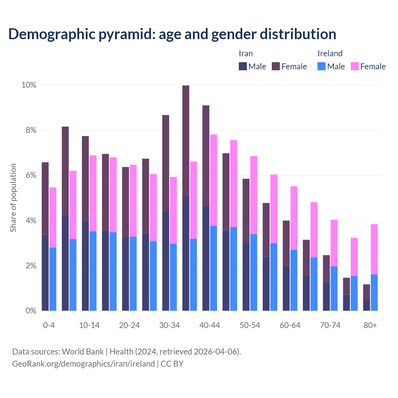 Demographics of Iran compared to Ireland: