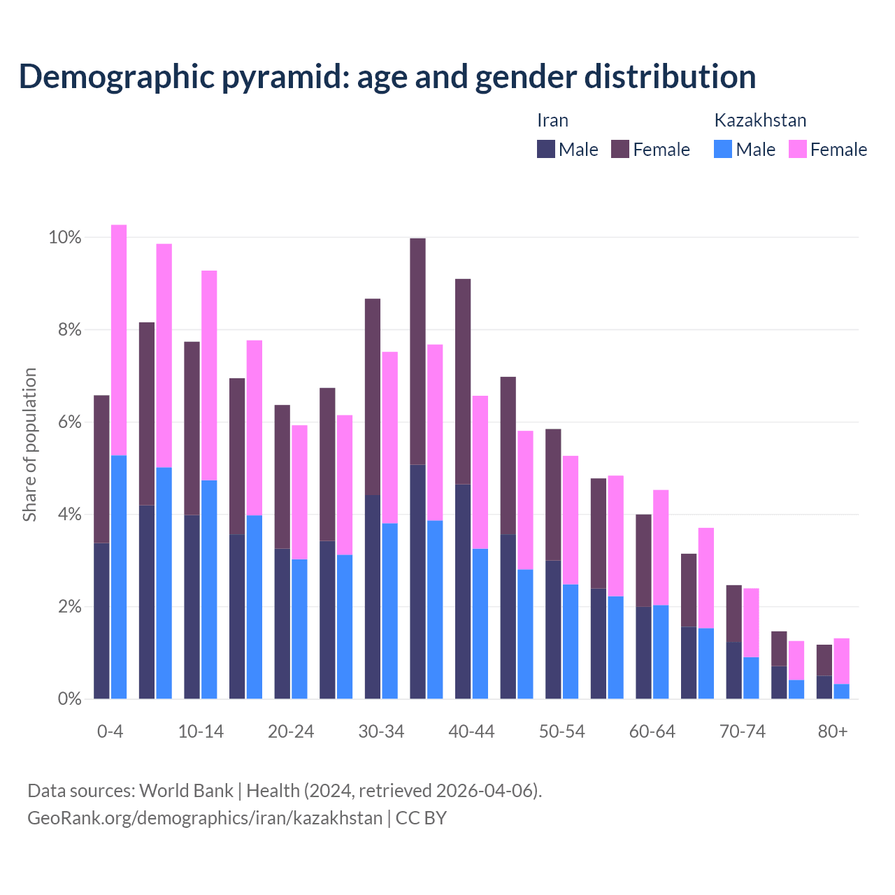 Demographics of Iran compared to Kazakhstan: