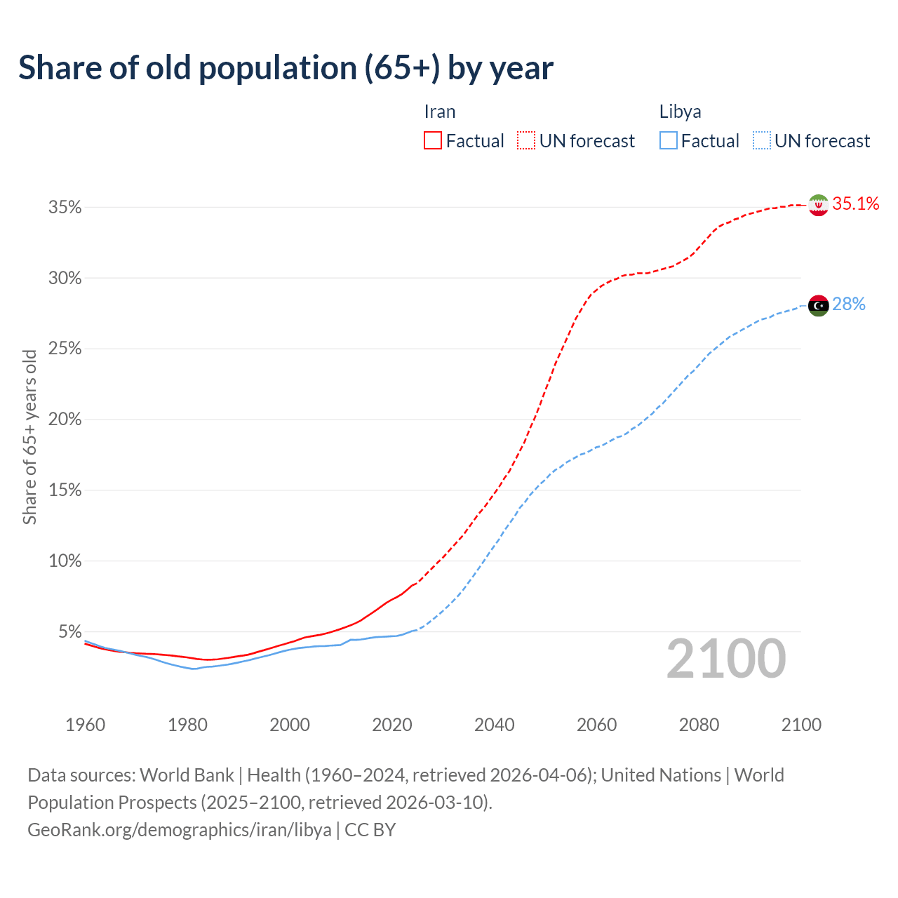 - The share of old-age demographic (65+) in Iran is 8.24% vs 5.02% in Libya.