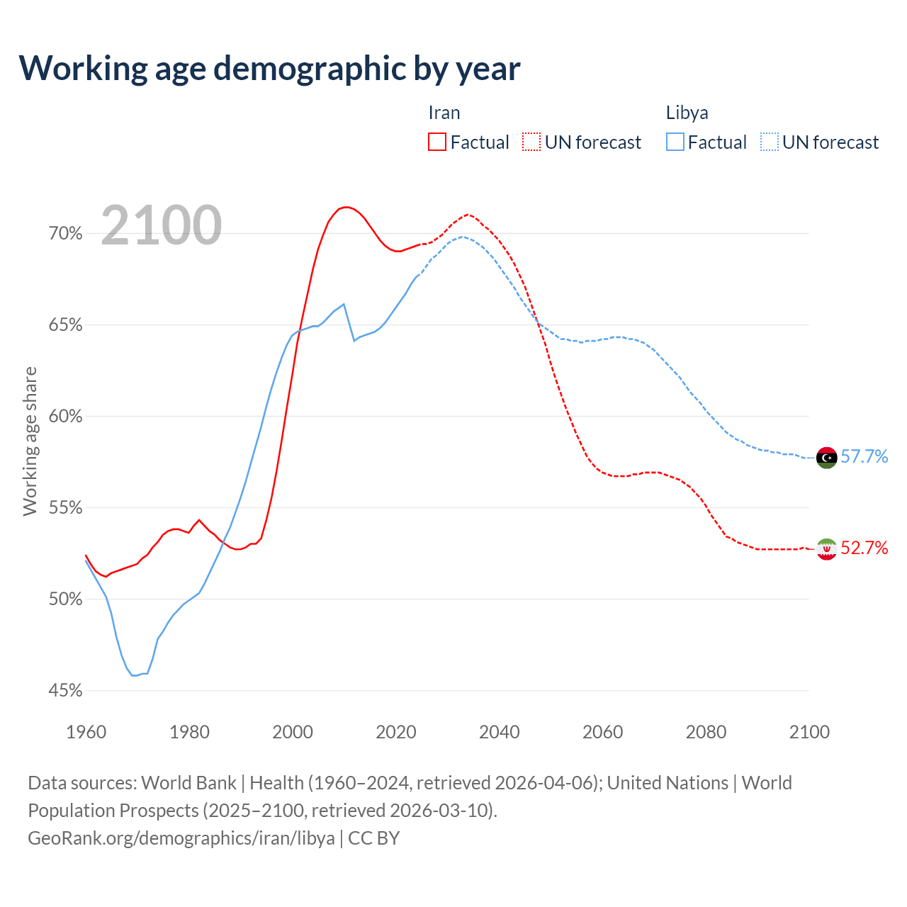 - Iran has 64.8M working age adults (aged 15-64) vs 5.11M in Libya.