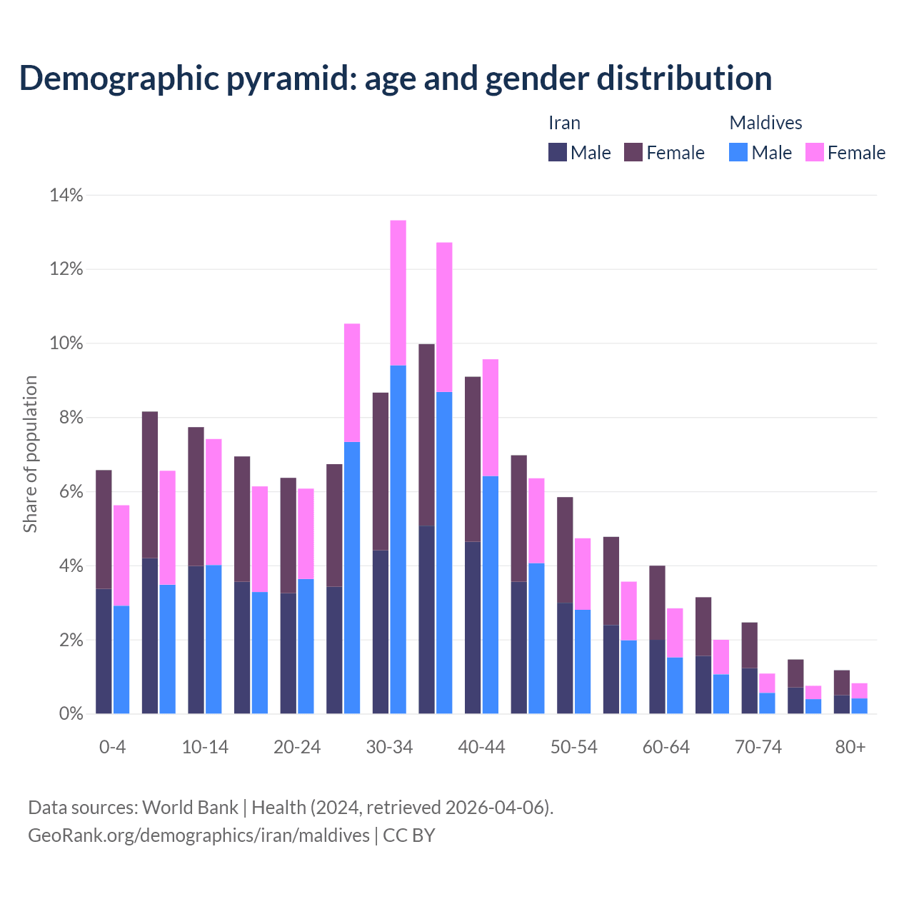 Demographics of Iran compared to Maldives: