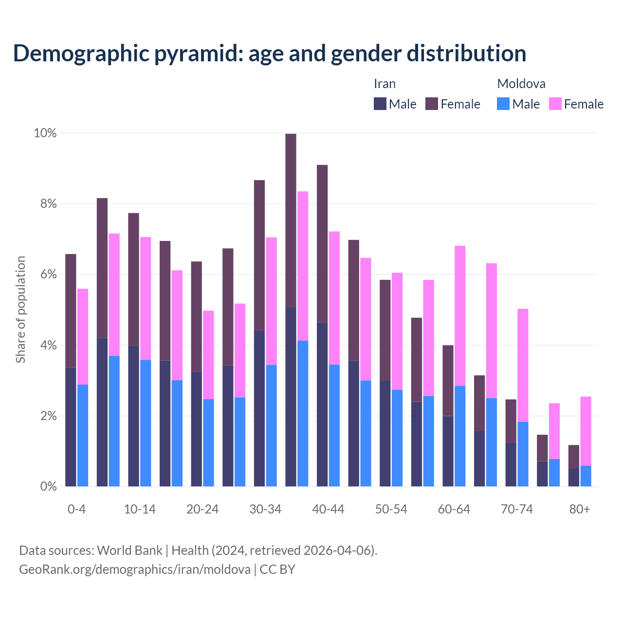 Demographics of Iran compared to Moldova: