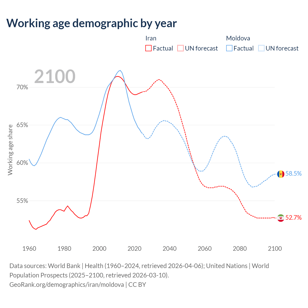 - Iran has 64.8M working age adults (aged 15-64) vs 1.5M in Moldova.