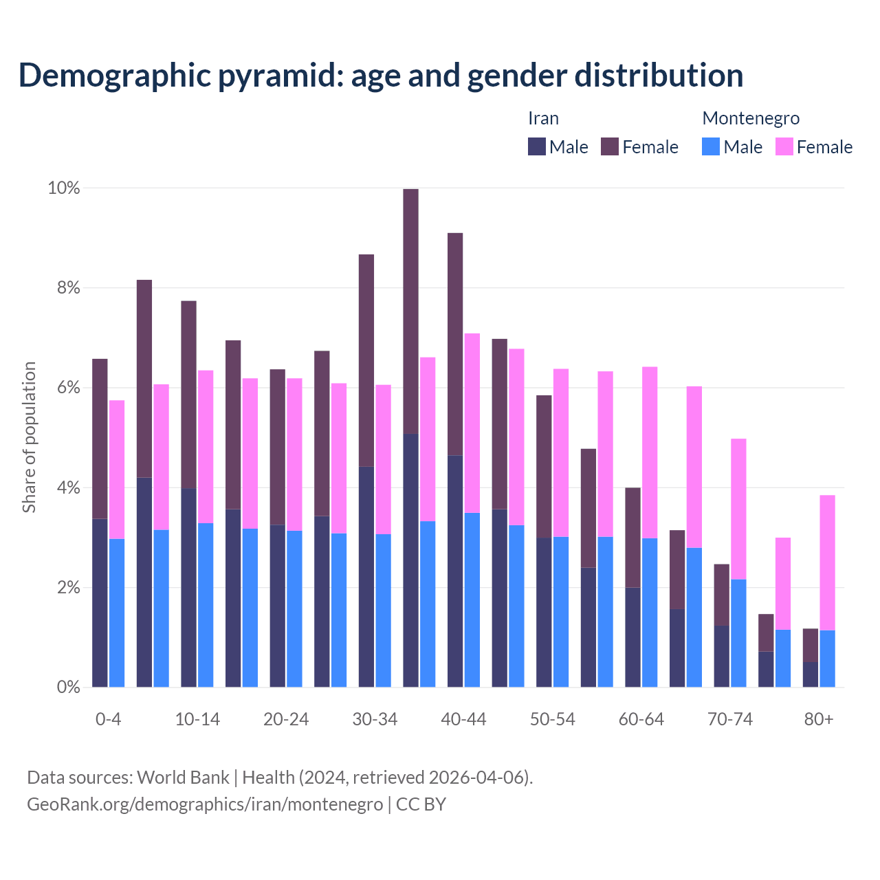 Demographics of Iran compared to Montenegro: