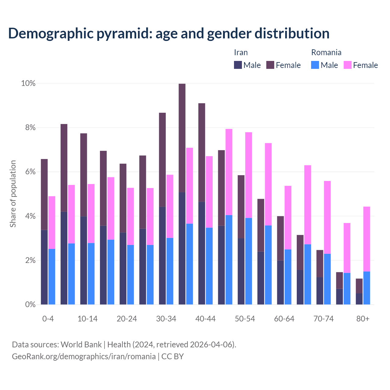 Demographics of Iran compared to Romania: