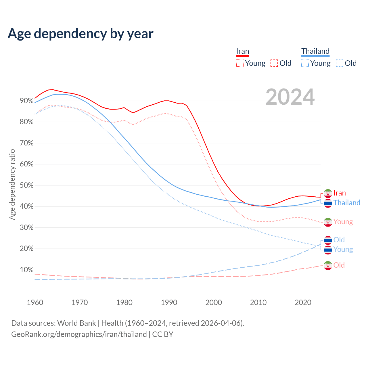 - The share of old-age demographic (65+) in Iran is 8.24% vs 15.4% in Thailand.