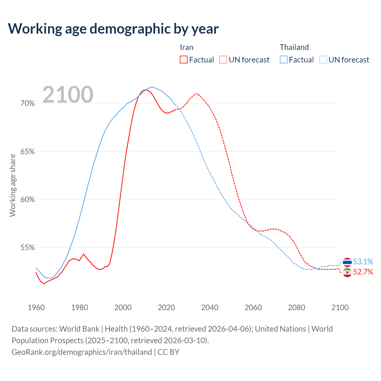 - Iran has 64.8M working age adults (aged 15-64) vs 50M in Thailand.