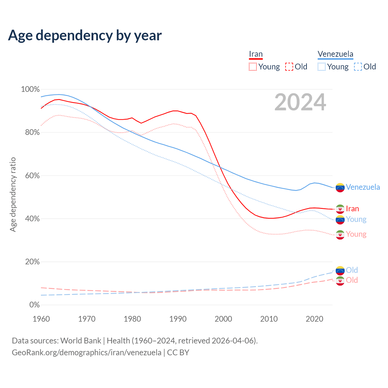 Data sources: World Bank | Health (1960–2024, retrieved 2026-04-06); U.S. Census Bureau (1960–2024, retrieved 2026-02-08).