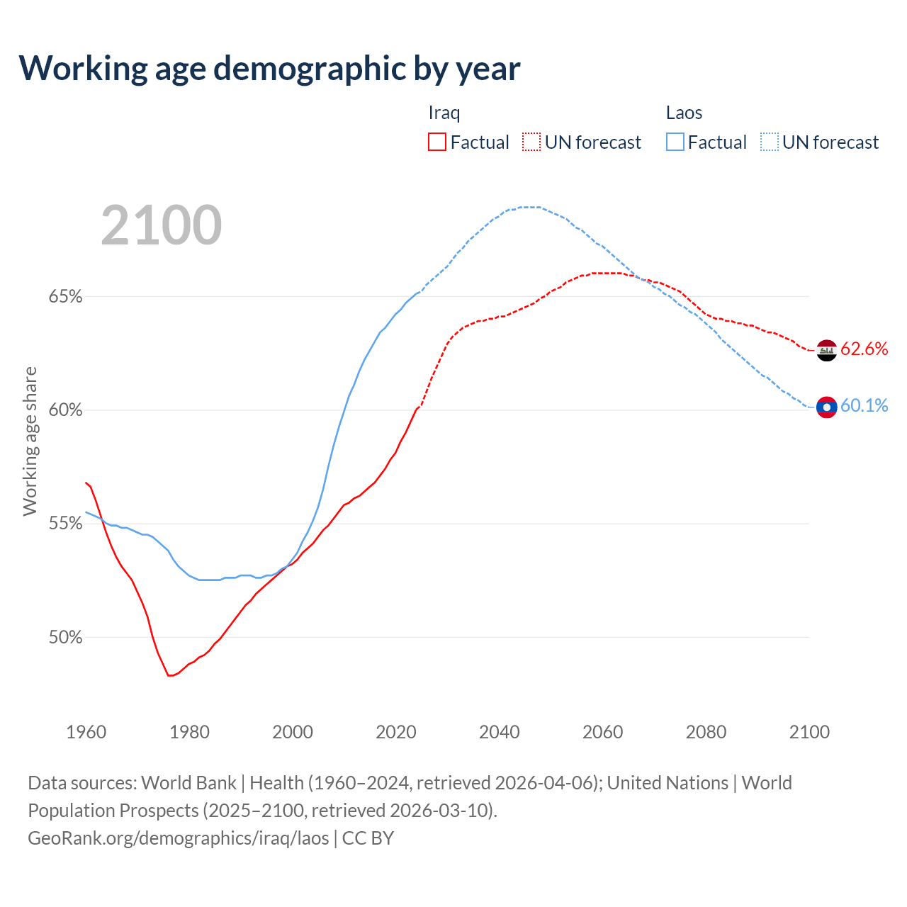 - Iraq has 29M working age adults (aged 15-64) vs 5.21M in Laos.