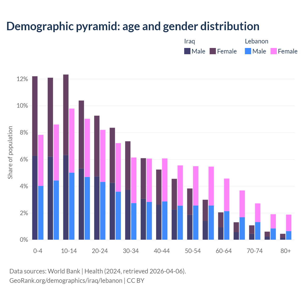 Demographics of Iraq compared to Lebanon: