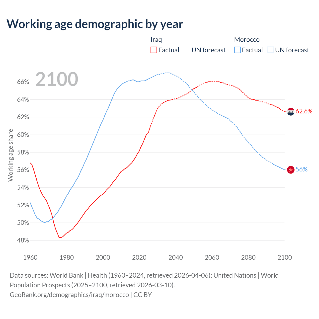 - Iraq has 29M working age adults (aged 15-64) vs 25.7M in Morocco.