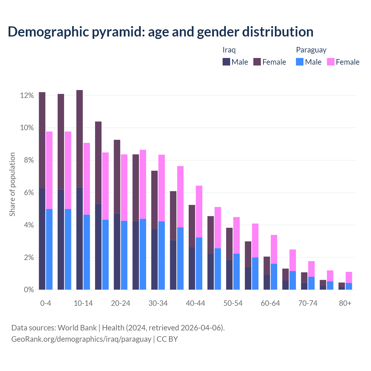 - Iraq is ranked 151/196 by median age (oldest to youngest) vs 118/196 for Paraguay.
