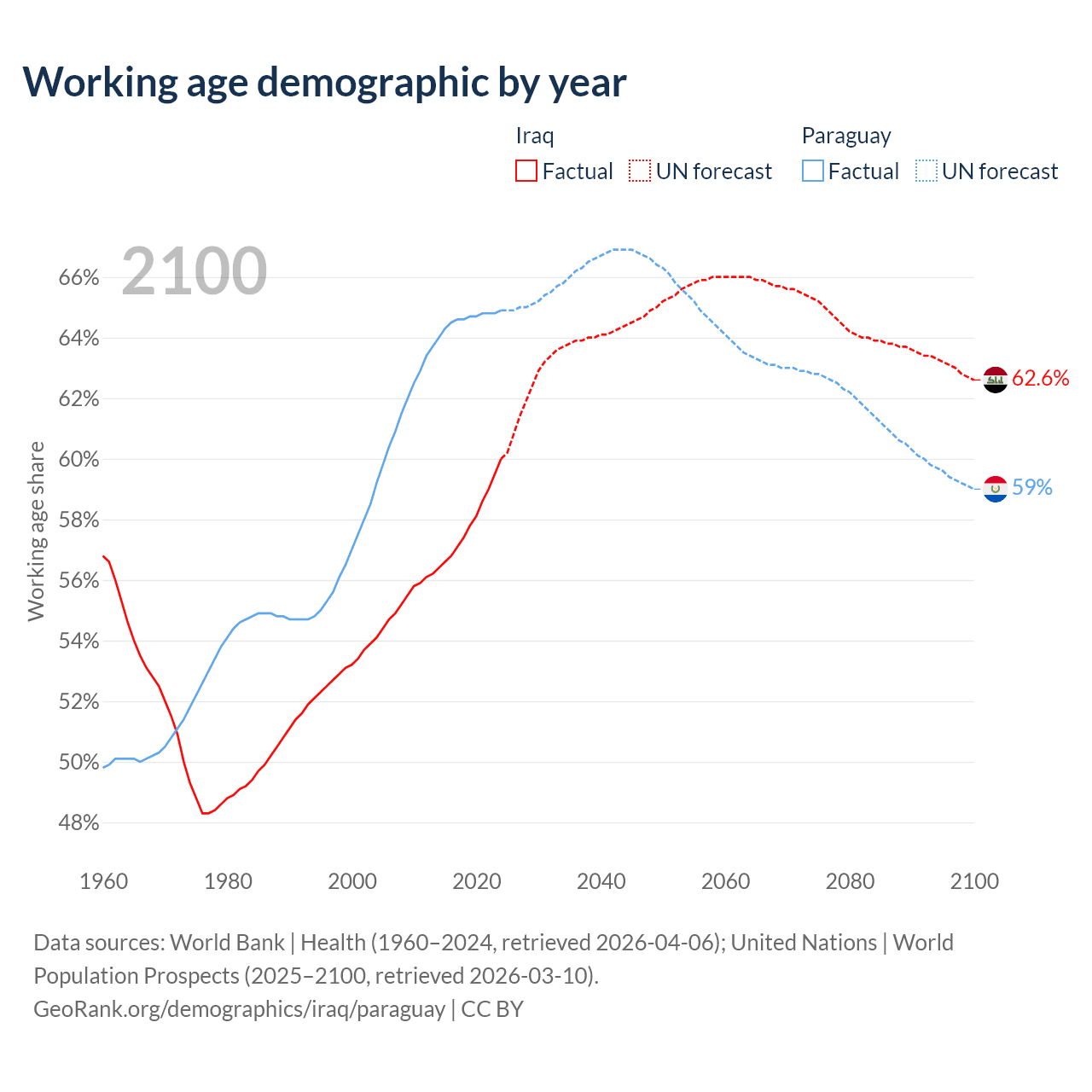 - Iraq has 29M working age adults (aged 15-64) vs 4.62M in Paraguay.