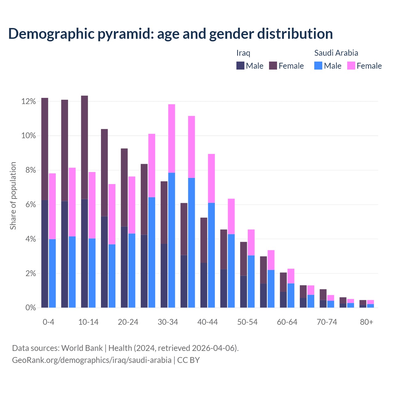 Demographics of Iraq compared to Saudi Arabia: