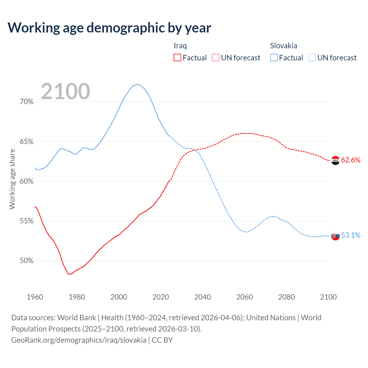 - Iraq has 29M working age adults (aged 15-64) vs 3.52M in Slovakia.