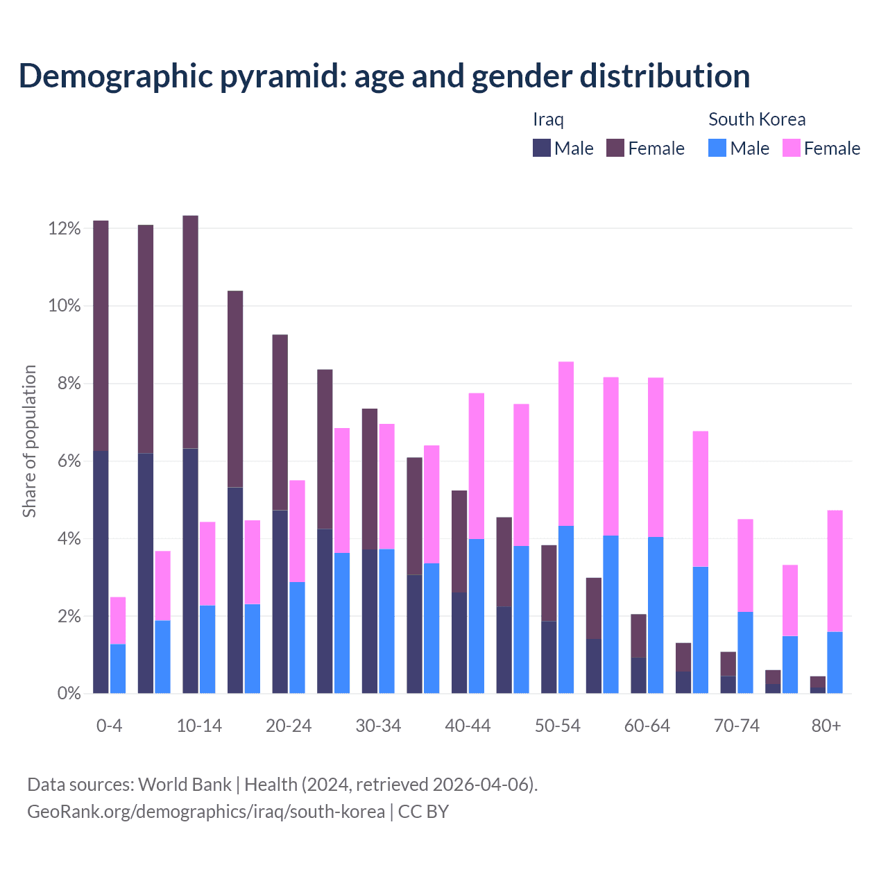 Demographics of Iraq compared to South Korea: