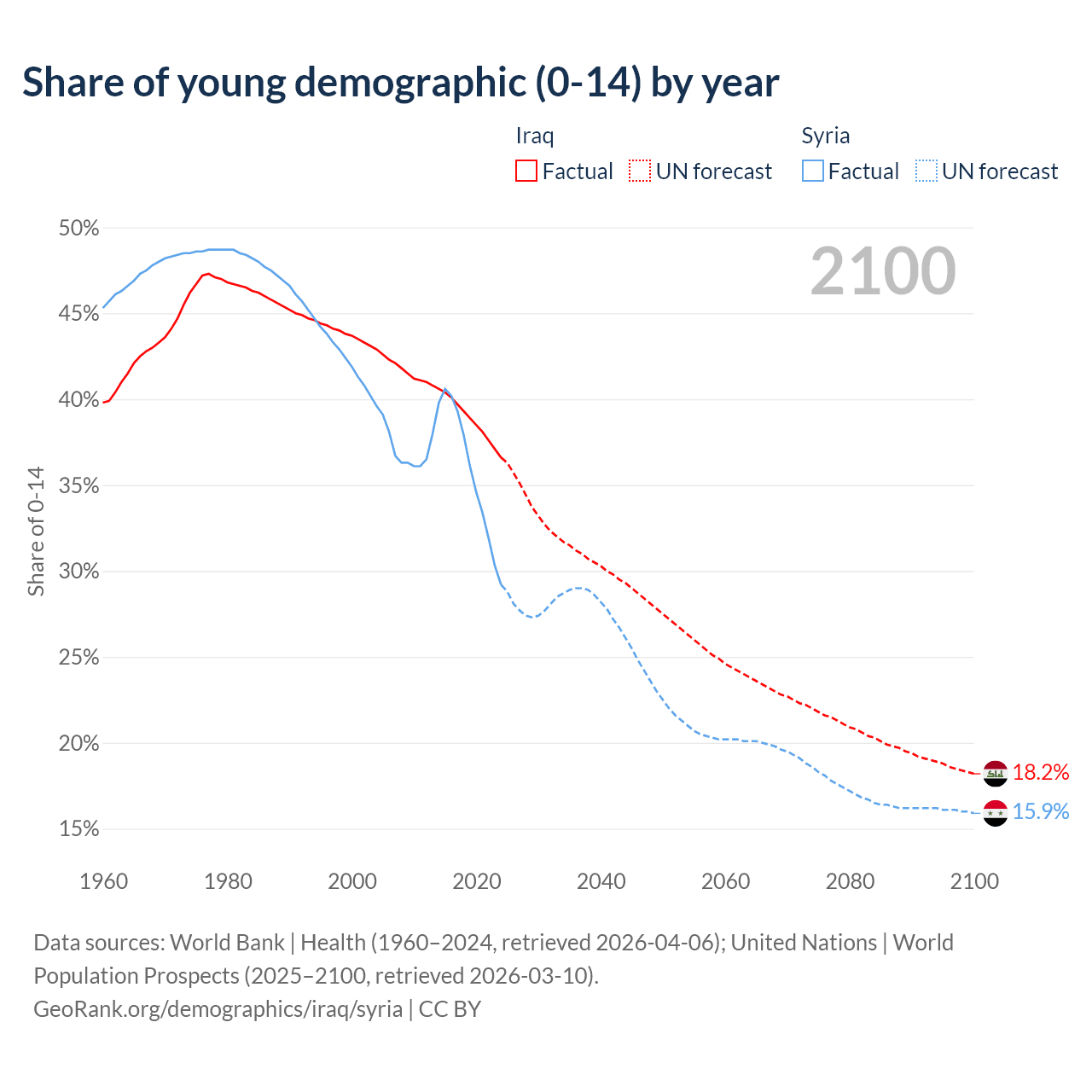- The total fertility rate is 3.25 in Iraq compared to 2.71 in Syria.