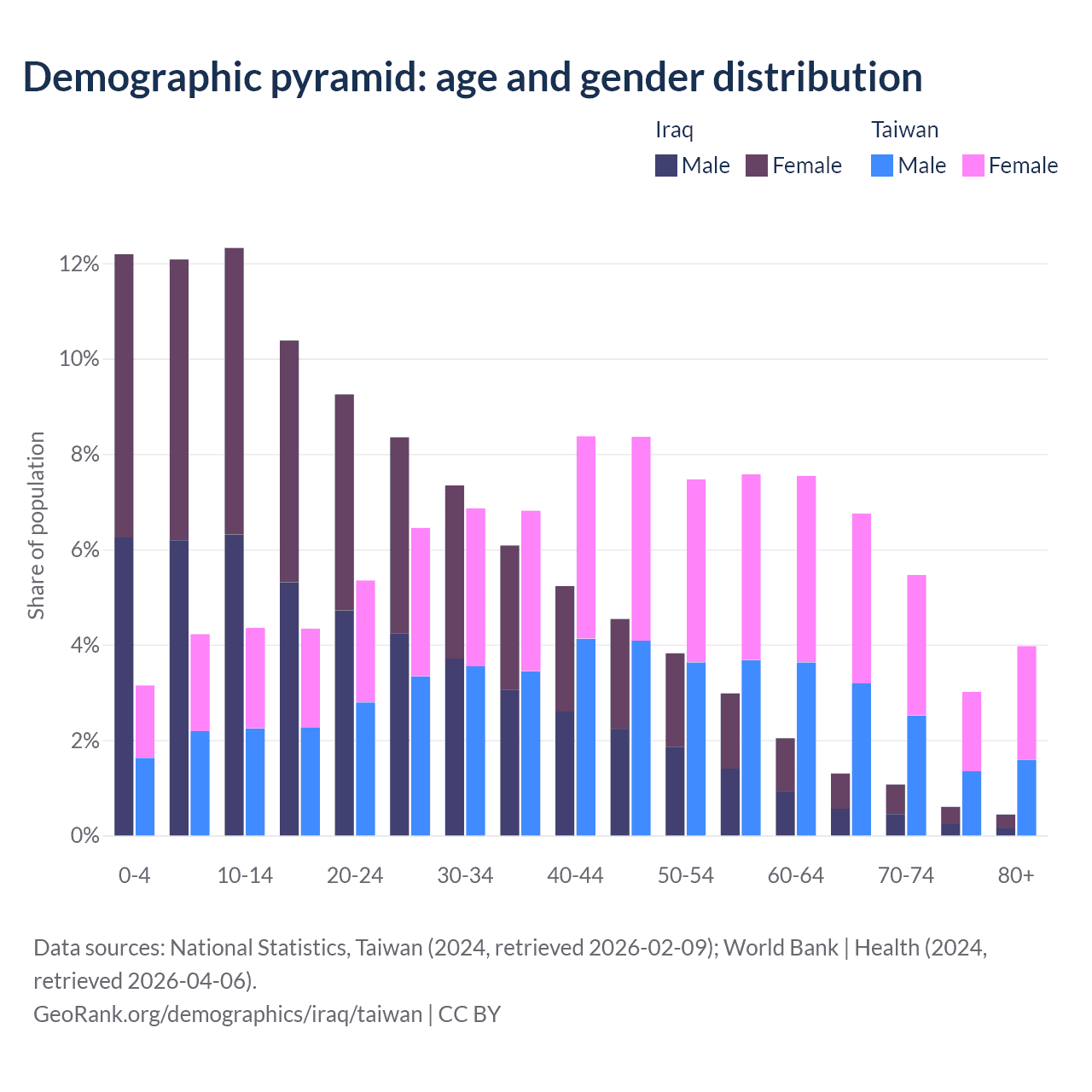 Demographics of Iraq compared to Taiwan: