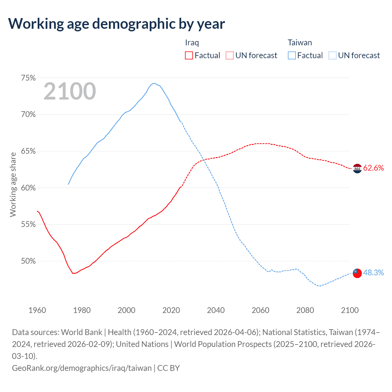 - Iraq has 29M working age adults (aged 15-64) vs 16.1M in Taiwan.