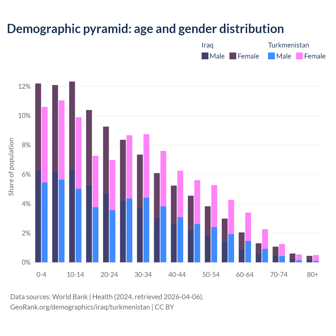 Demographics of Iraq compared to Turkmenistan:
