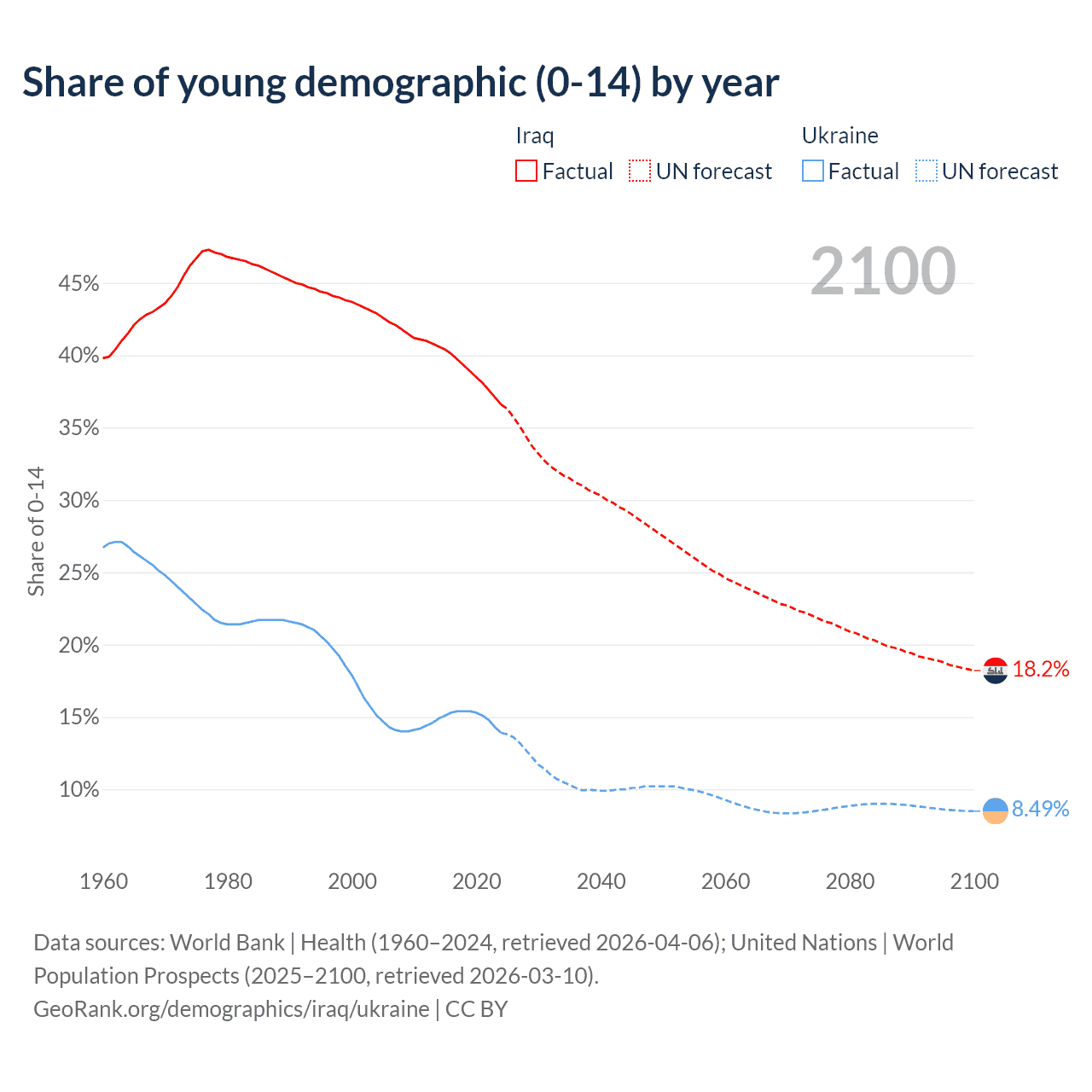 - The total fertility rate is 3.25 in Iraq compared to 0.98 in Ukraine.