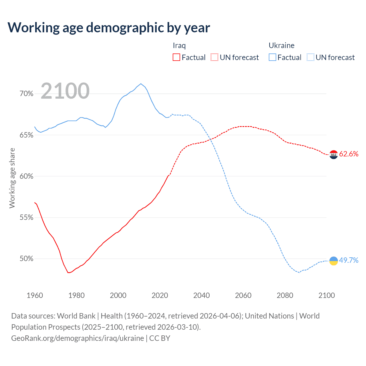 - Iraq has 29M working age adults (aged 15-64) vs 26.9M in Ukraine.