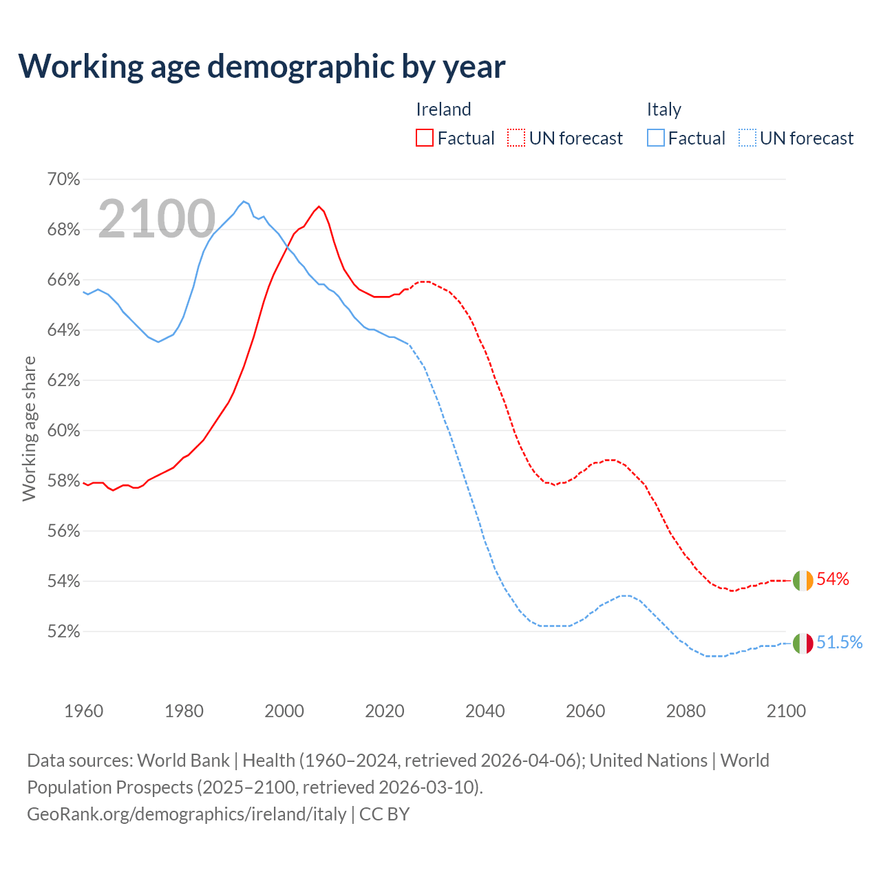 - Ireland has 3.62M working age adults (aged 15-64) vs 37.2M in Italy.