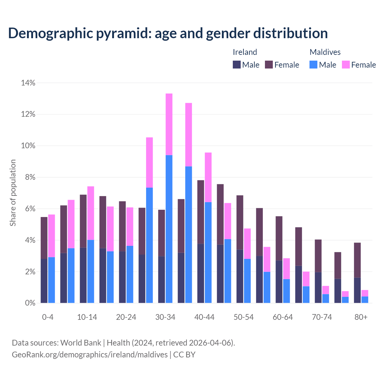 Demographics of Ireland compared to Maldives: