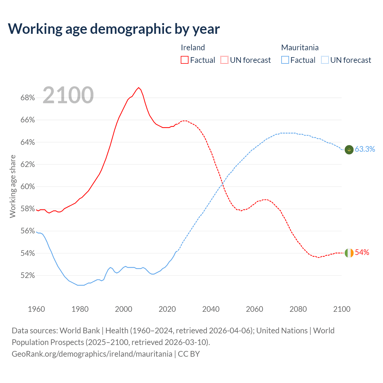 - Ireland has 3.62M working age adults (aged 15-64) vs 2.98M in Mauritania.