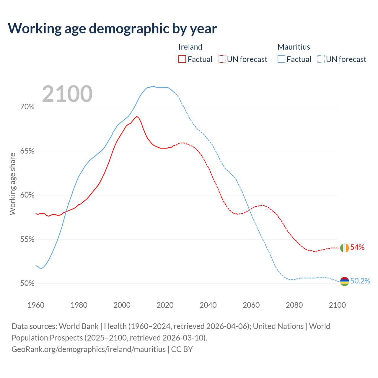 - Ireland has 3.62M working age adults (aged 15-64) vs 889K in Mauritius.