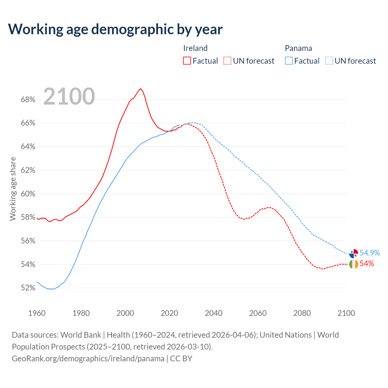 - Ireland has 3.62M working age adults (aged 15-64) vs 3.05M in Panama.