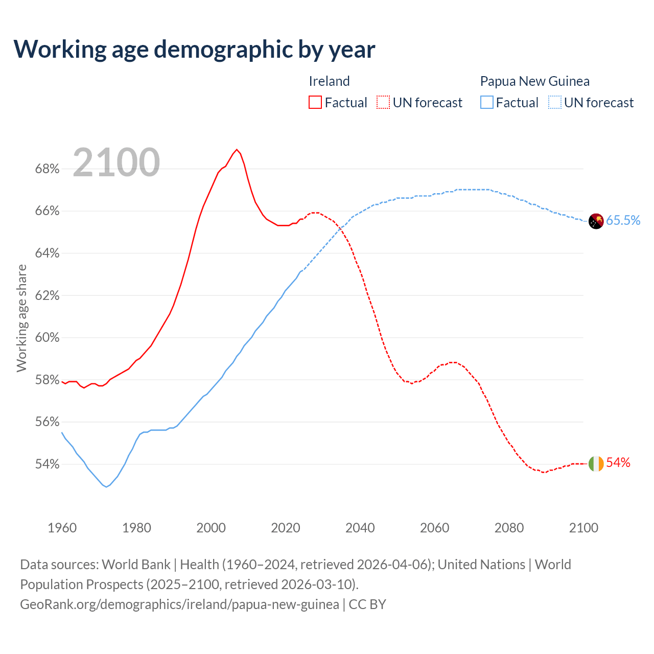 - Ireland has 3.62M working age adults (aged 15-64) vs 6.94M in Papua New Guinea.