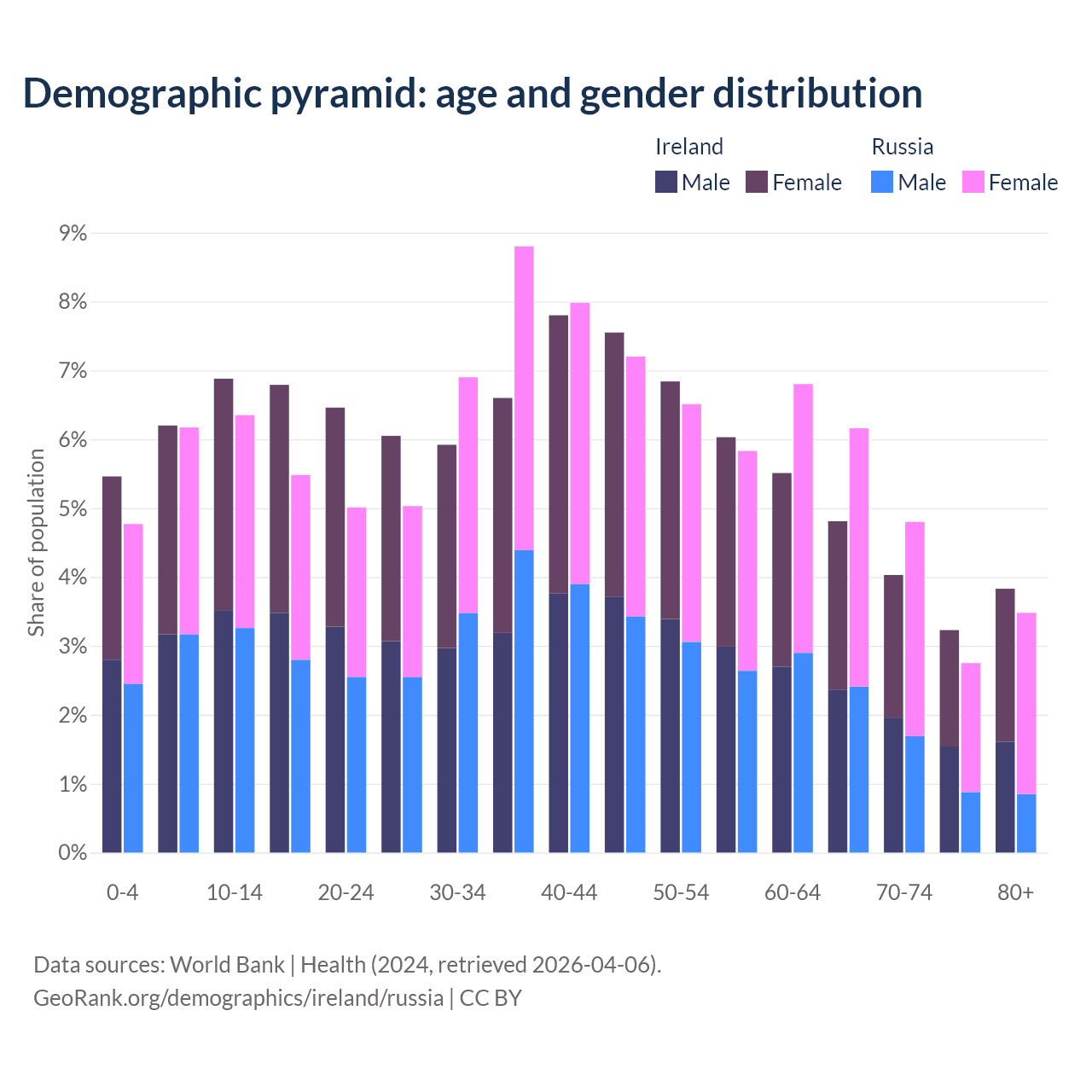 Demographics of Ireland compared to Russia: