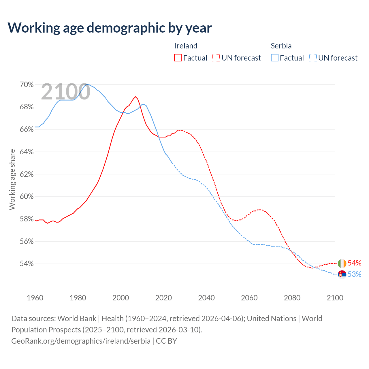 - Ireland has 3.62M working age adults (aged 15-64) vs 4.09M in Serbia.
