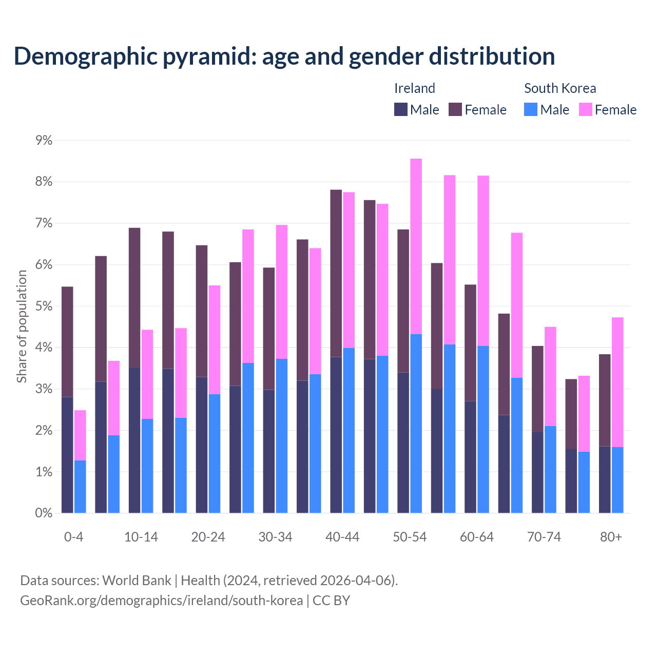 Demographics of Ireland compared to South Korea: