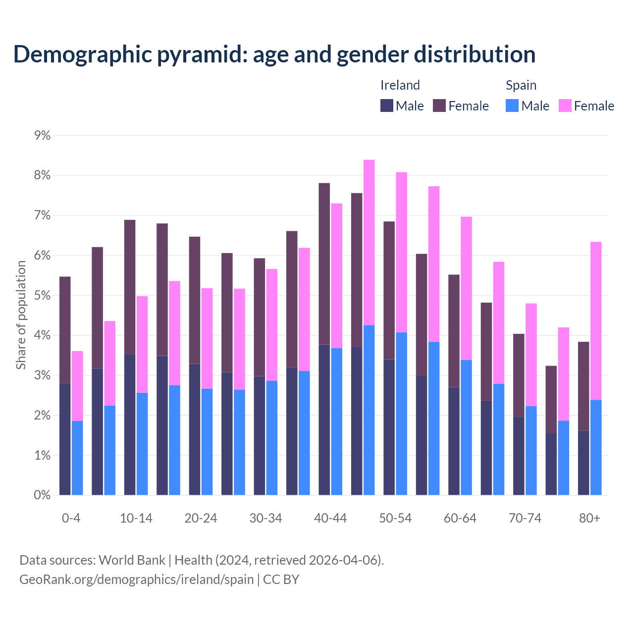 Demographics of Ireland compared to Spain: