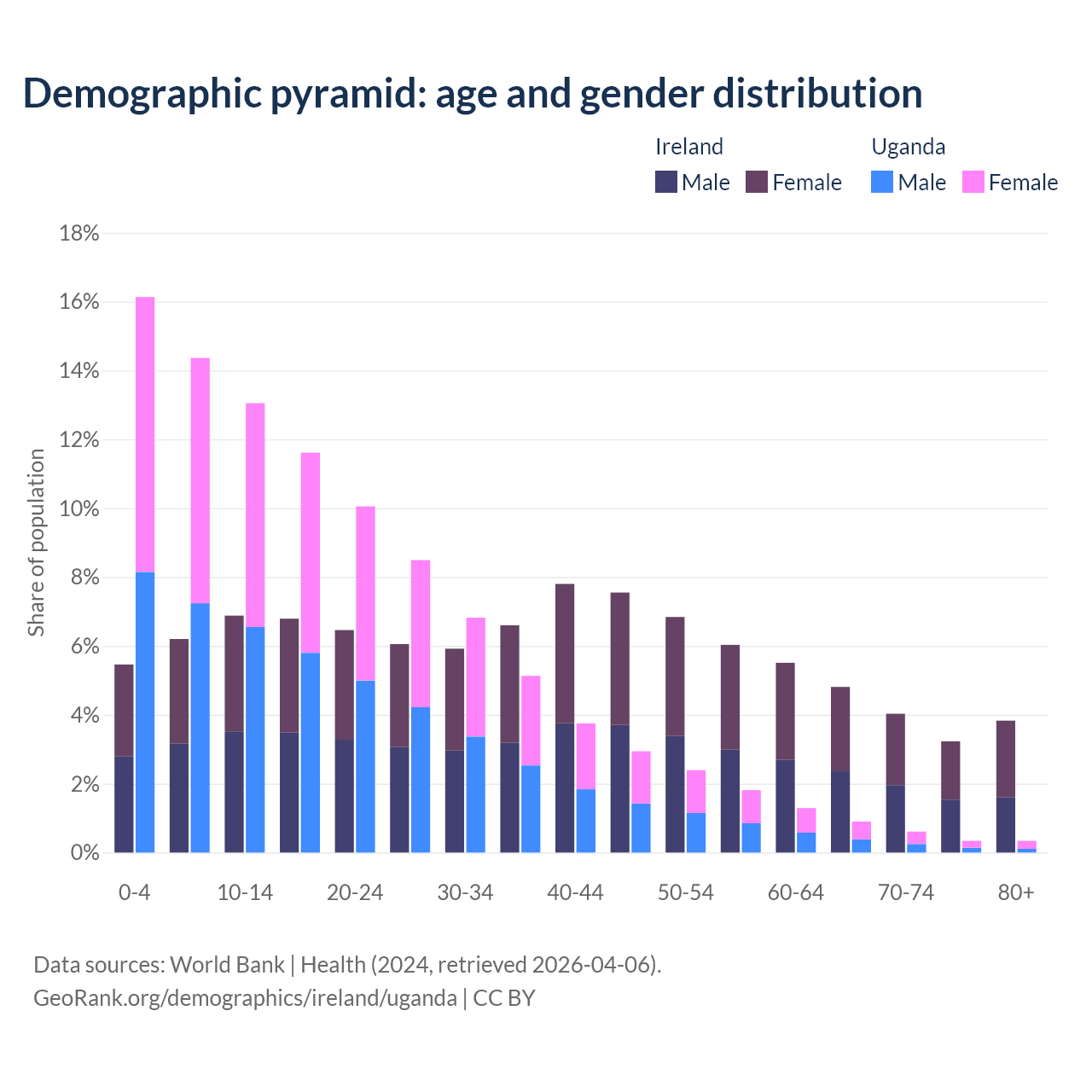 Demographics of Ireland compared to Uganda: