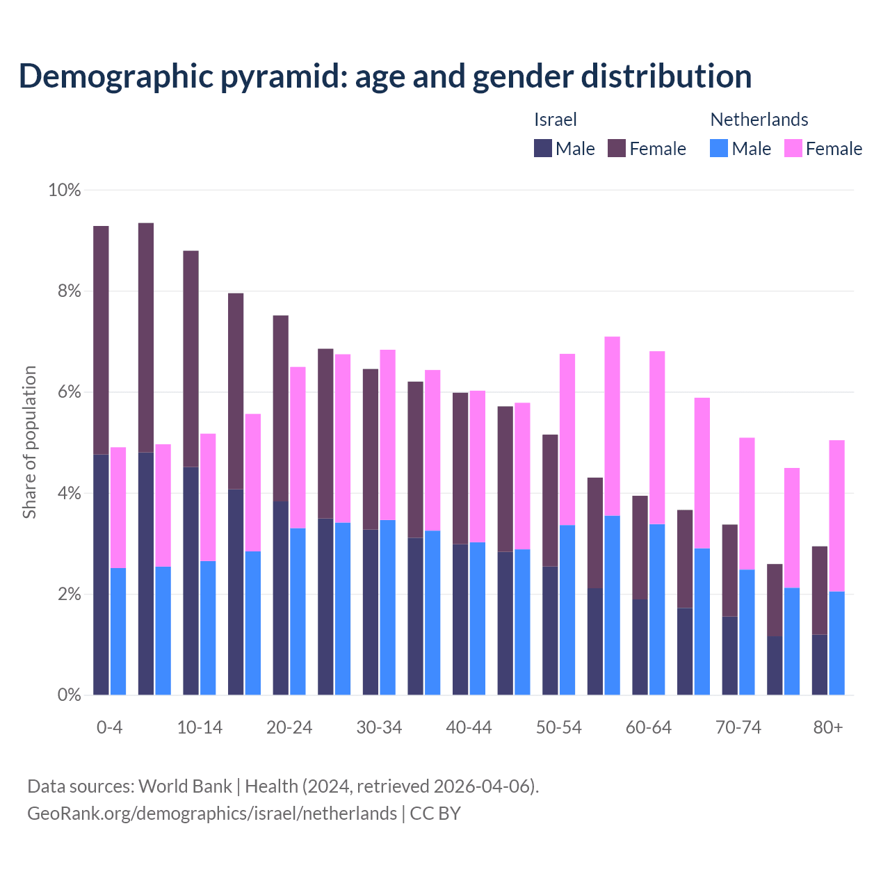 Demographics of Israel compared to the Netherlands: