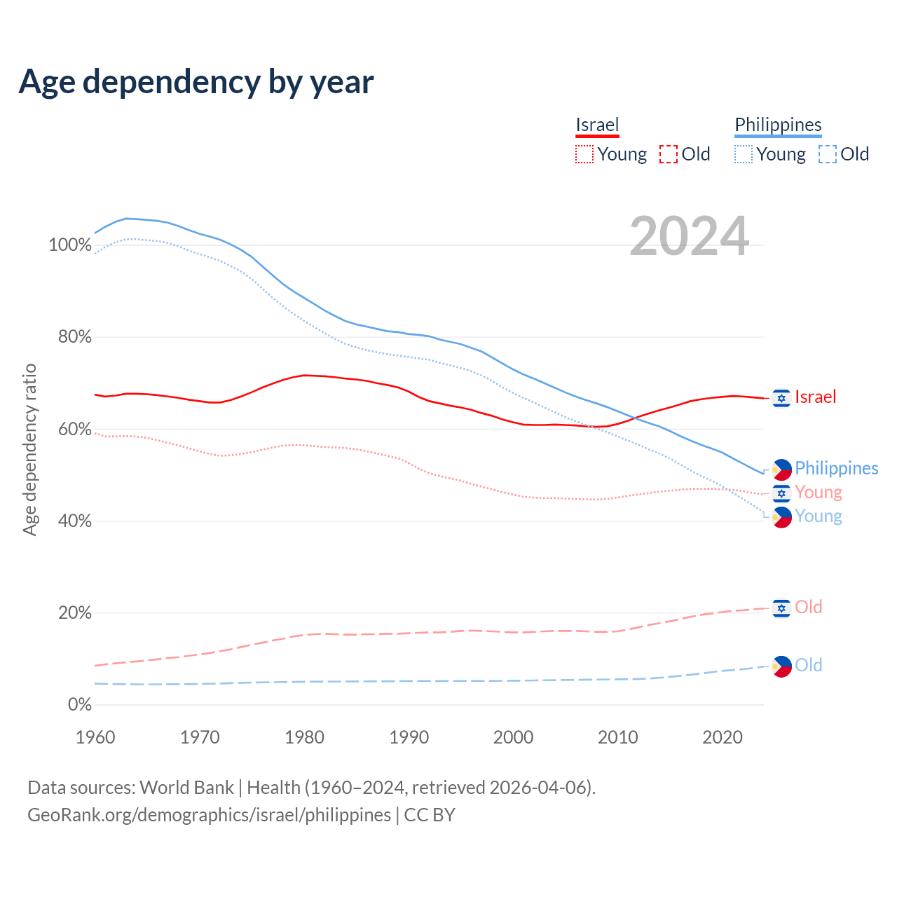- Israel is ranked 103/196 by median age (oldest to youngest) vs 123/196 for the Philippines.