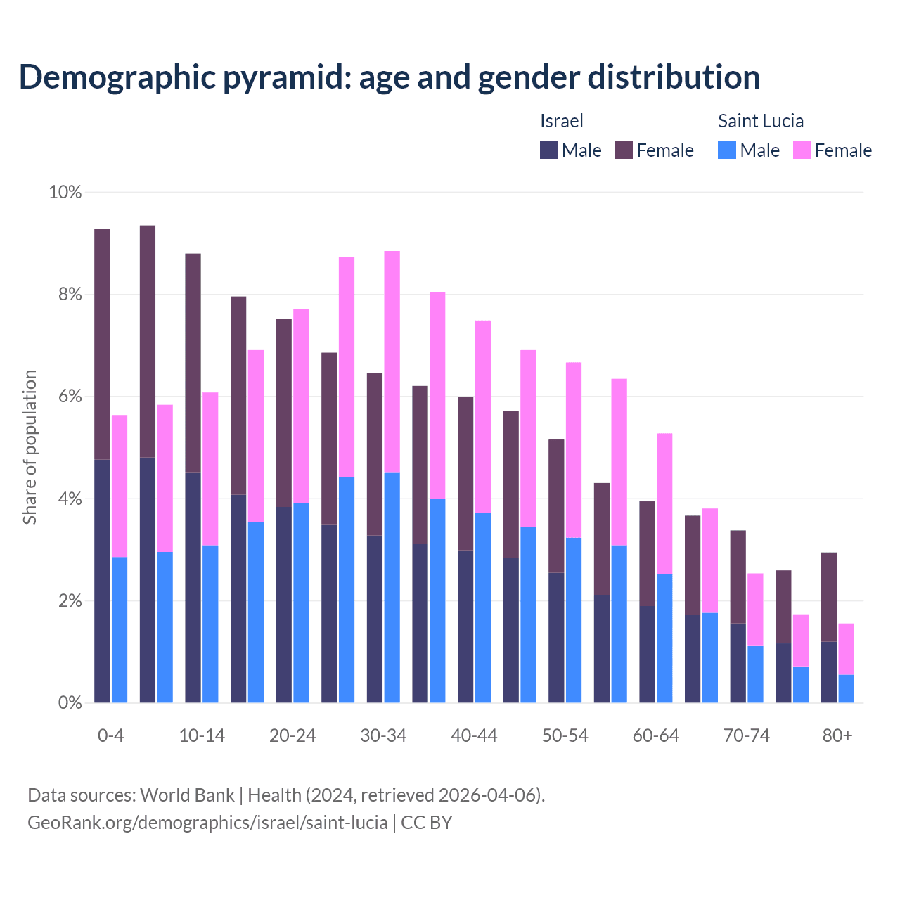 Demographics of Israel compared to Saint Lucia: