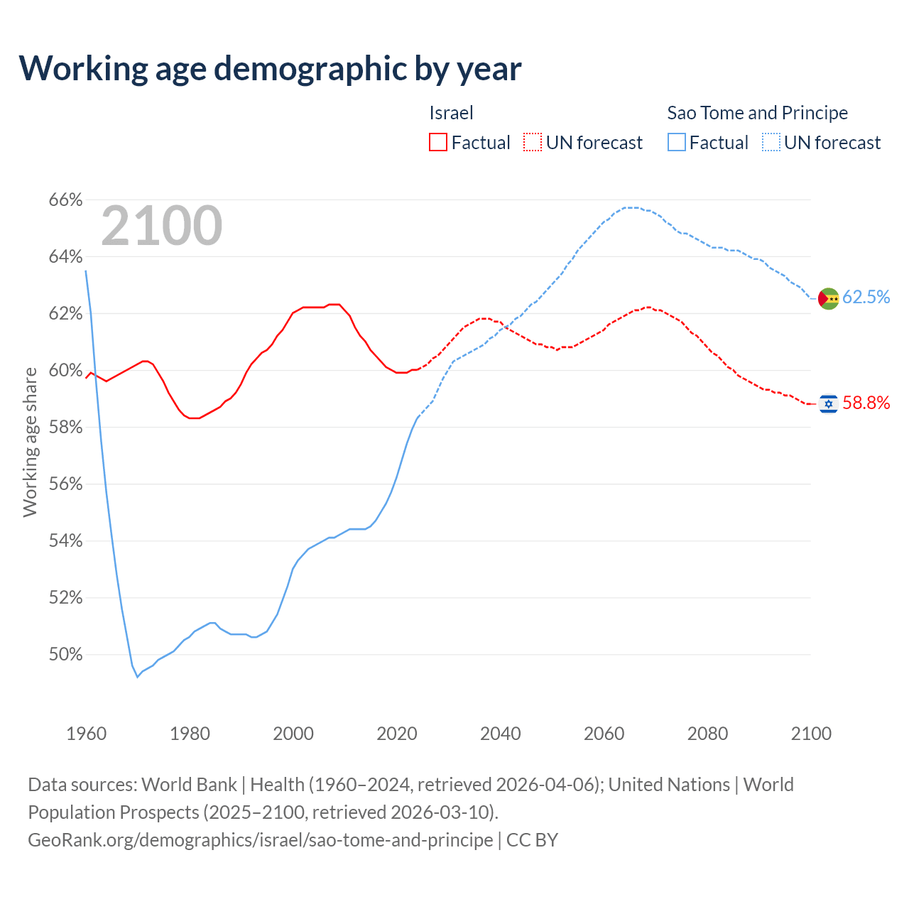 - Israel has 6.18M working age adults (aged 15-64) vs 144K in Sao Tome and Principe.
