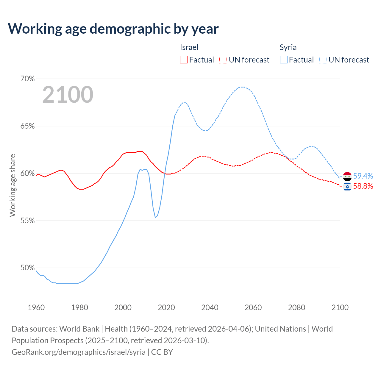- Israel has 6.18M working age adults (aged 15-64) vs 17.7M in Syria.