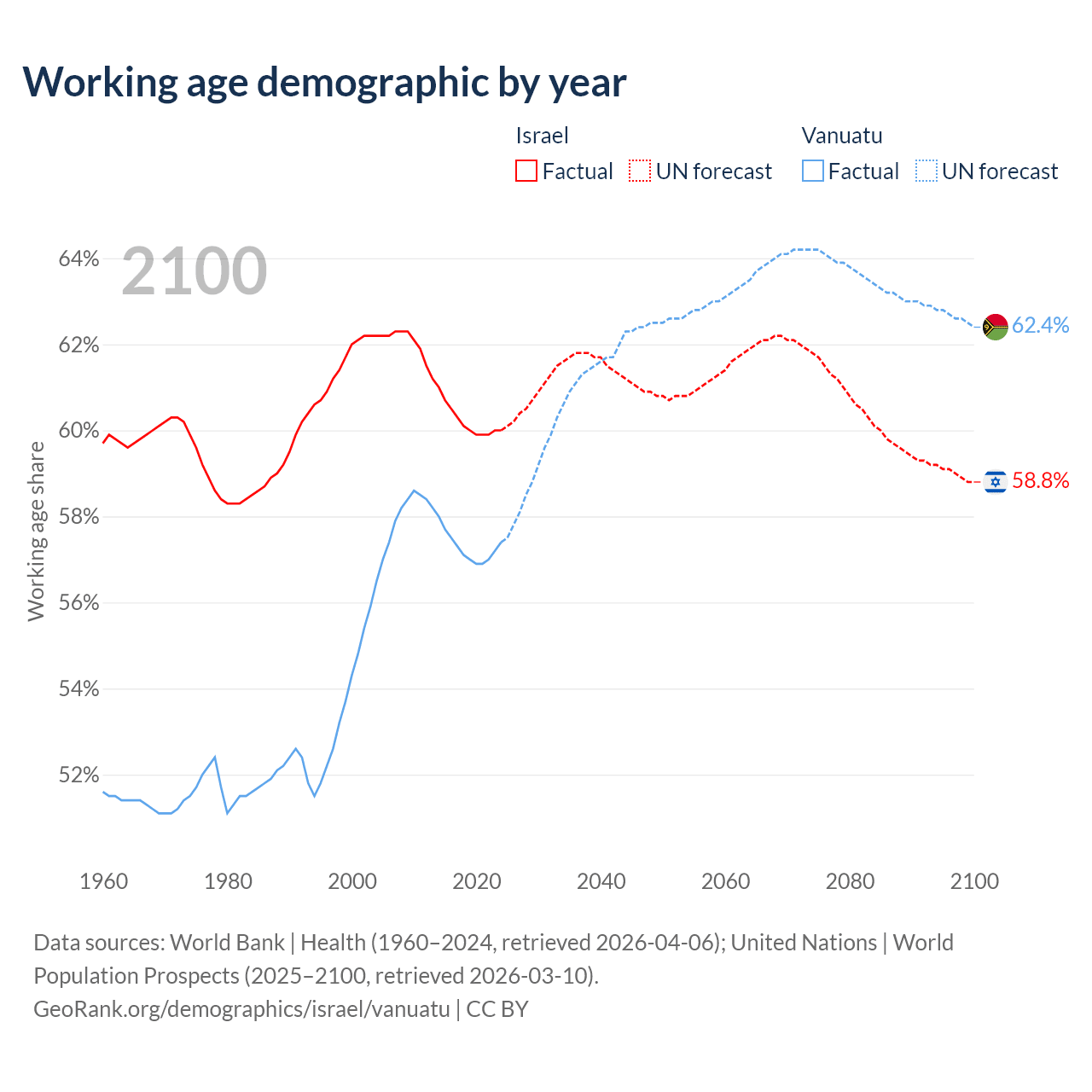 - Israel has 6.18M working age adults (aged 15-64) vs 198K in Vanuatu.