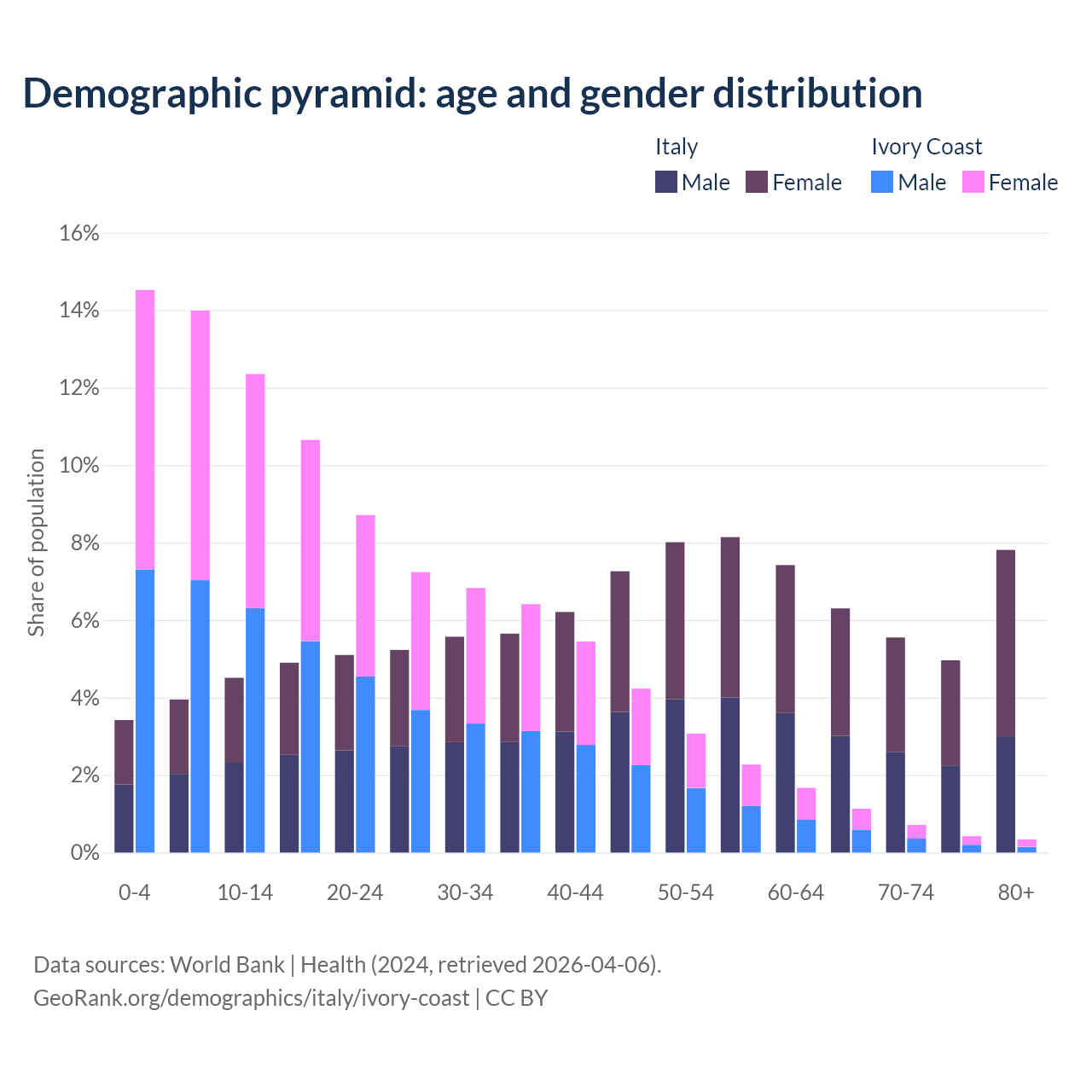 Demographics of Italy compared to Ivory Coast: