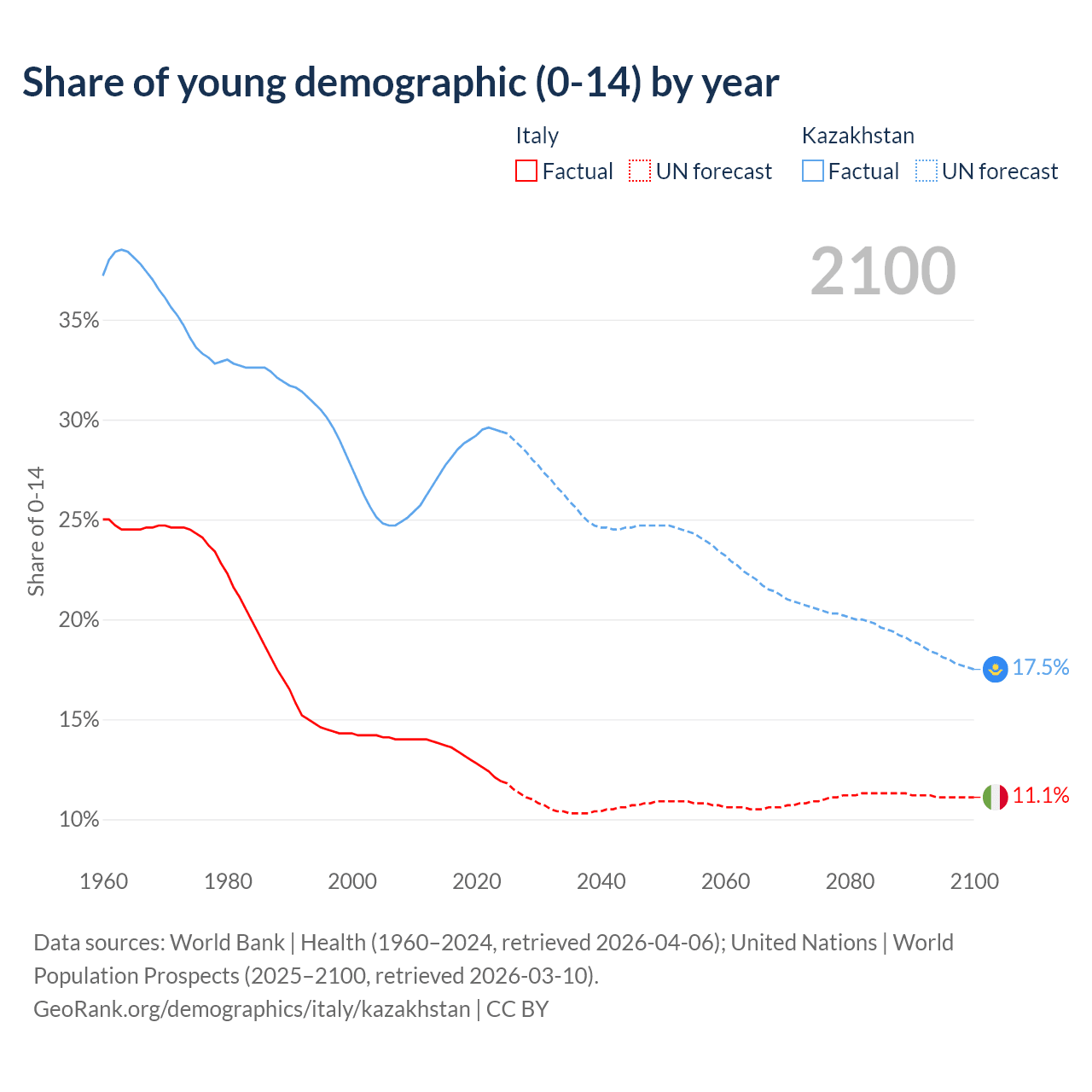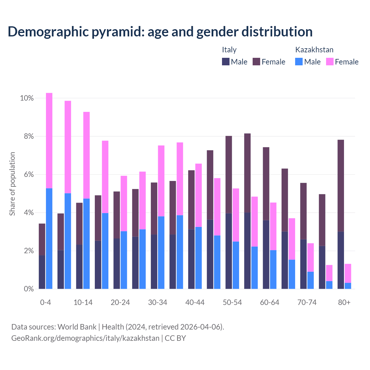 Demographics of Italy compared to Kazakhstan: