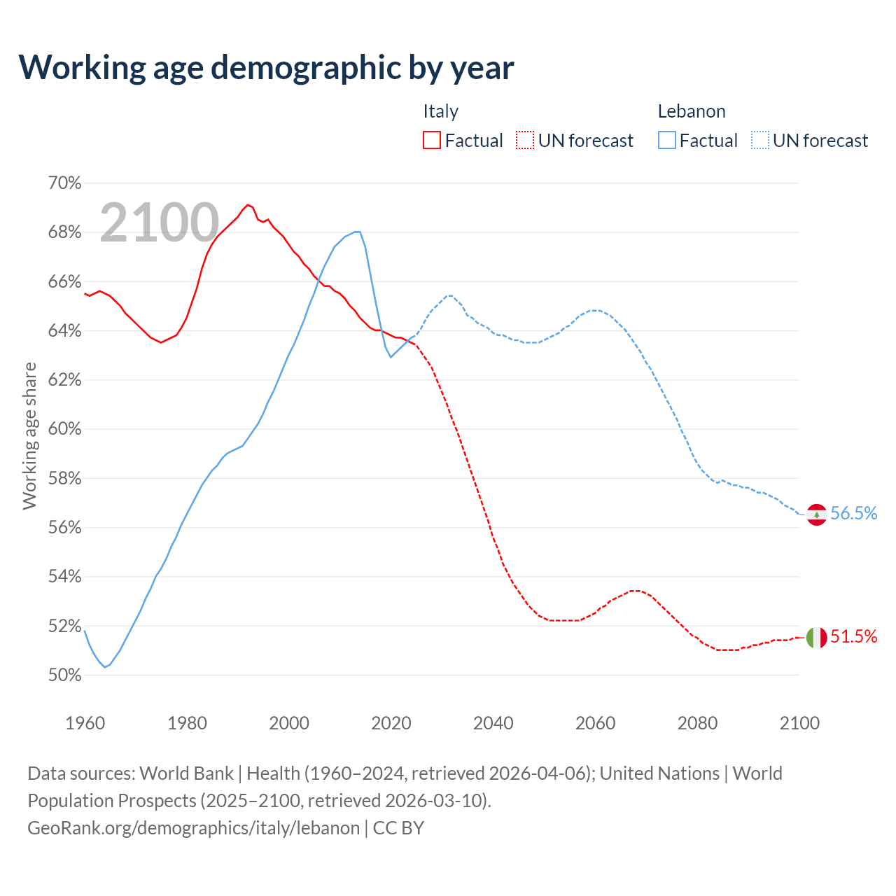 - Italy has 37.2M working age adults (aged 15-64) vs 3.76M in Lebanon.